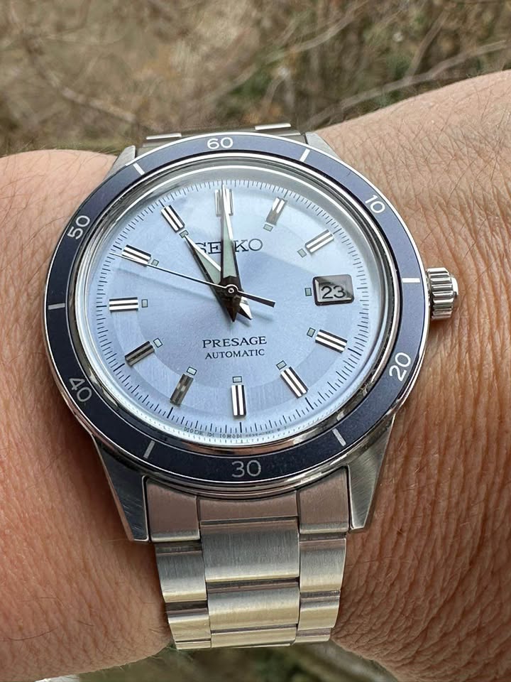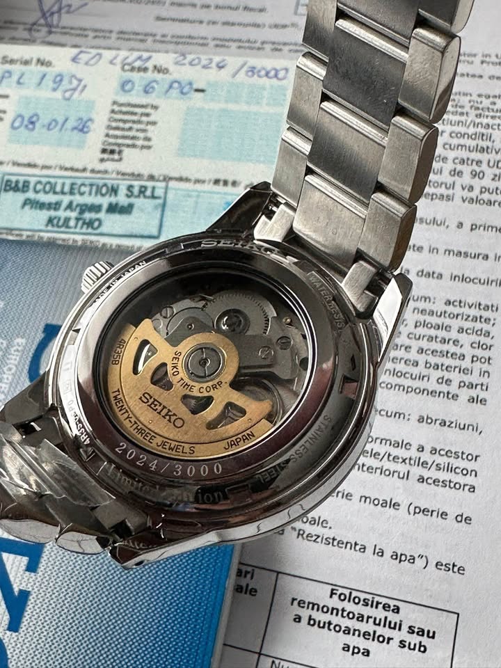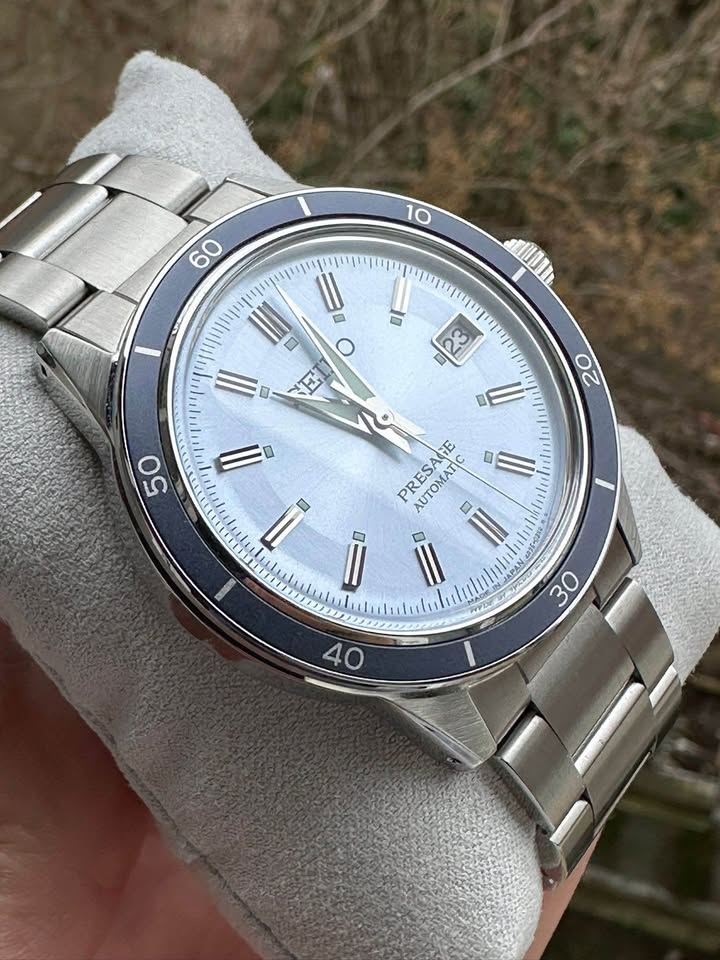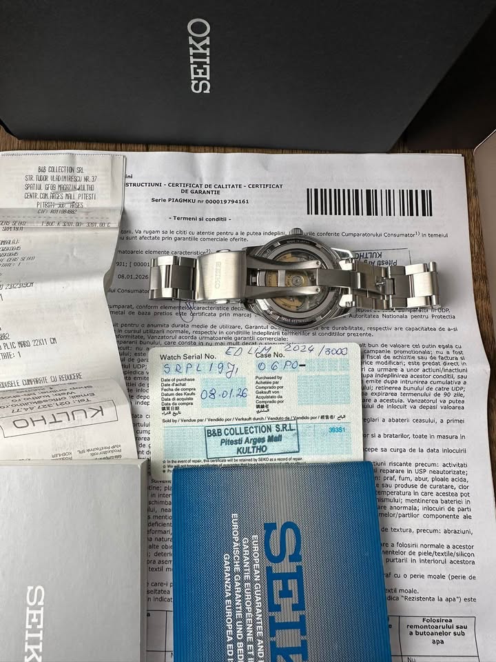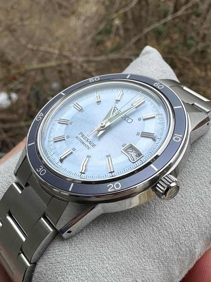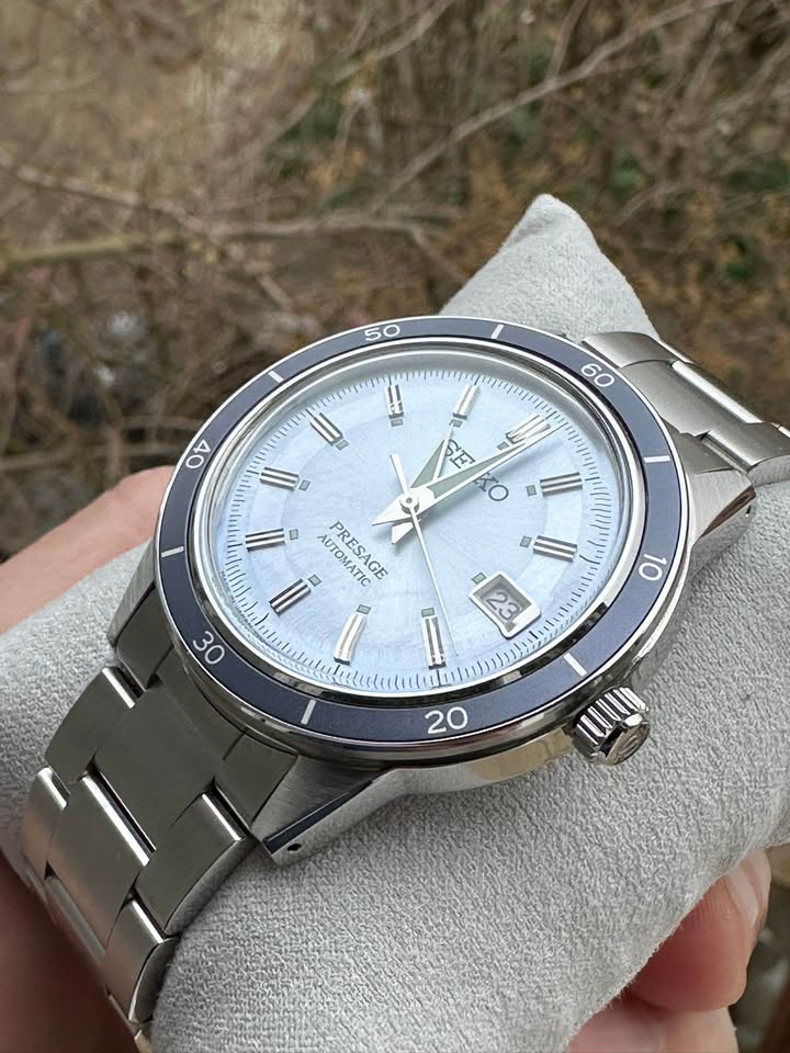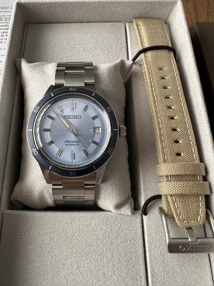 Seiko Presage Style60'S automat, ediție limitată, carcasă de oțel 41mm, mecanism automatic Seiko 4R35, 23 rubine, 41h rezervă, rezistență 50M, NOU în garanție până în ianuarie 2028. Preț 2400 lei.